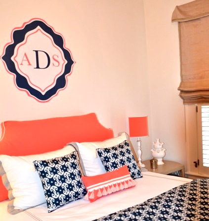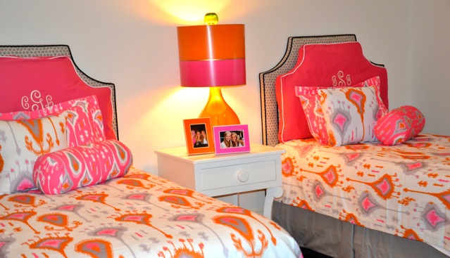 Oooooh, that tangerine and hot pink room, those colors make my heart happy! And the headboard pillow? Oh, my!