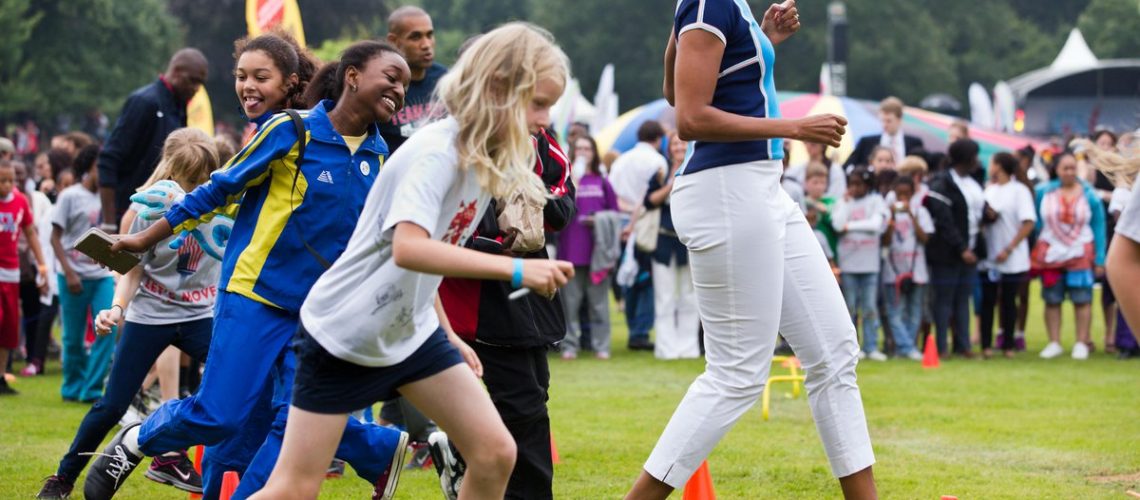 First Lady Michelle Obama was at Winfield recently during the Olympics to lead “Let’s Move! London” to promote exercise, which is a big thing of FLOTUS’s, and a good thing. Photo by White House photographer Sonya Herbert.