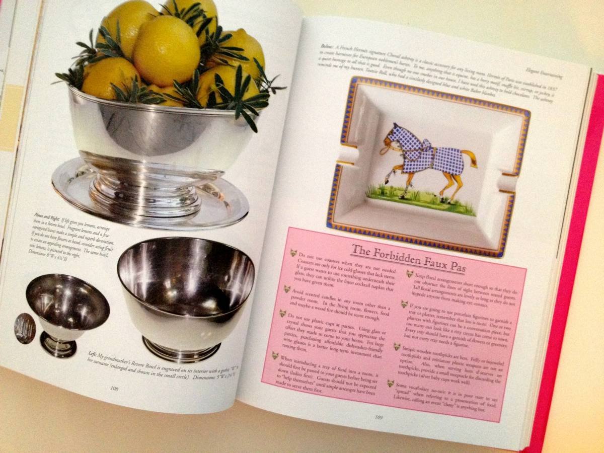 Anything to save her (and the rest of us) from Forbidden Faux Pas. These might be my favorite parts of the book. “Do not use coasters unless you need them… Do not use plastic cups at parties… Avoid matched sets of furniture… Stay away from candles with bright colors.” You don’t have to agree with them all, but you can respect the integrity of a point of view.