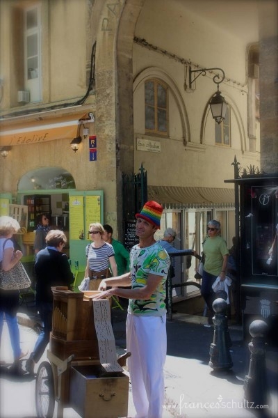 I love the music man in the funny hat. He looks happy and sweet. I gave him two euros for the photo. He is probably a marquis and a brain surgeon and has a chateau next door to Valentino.