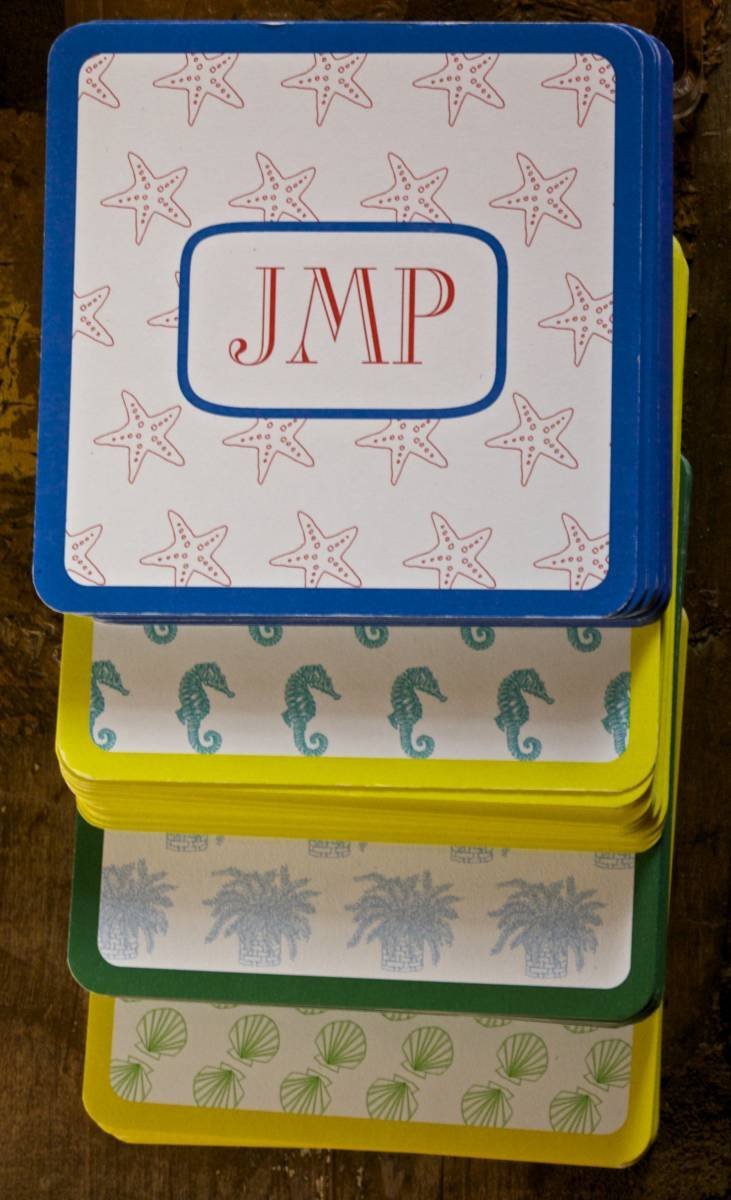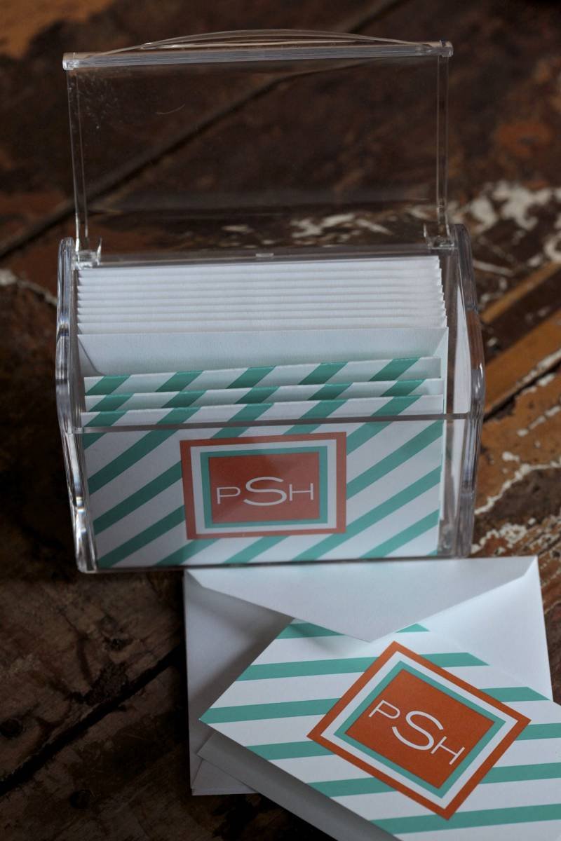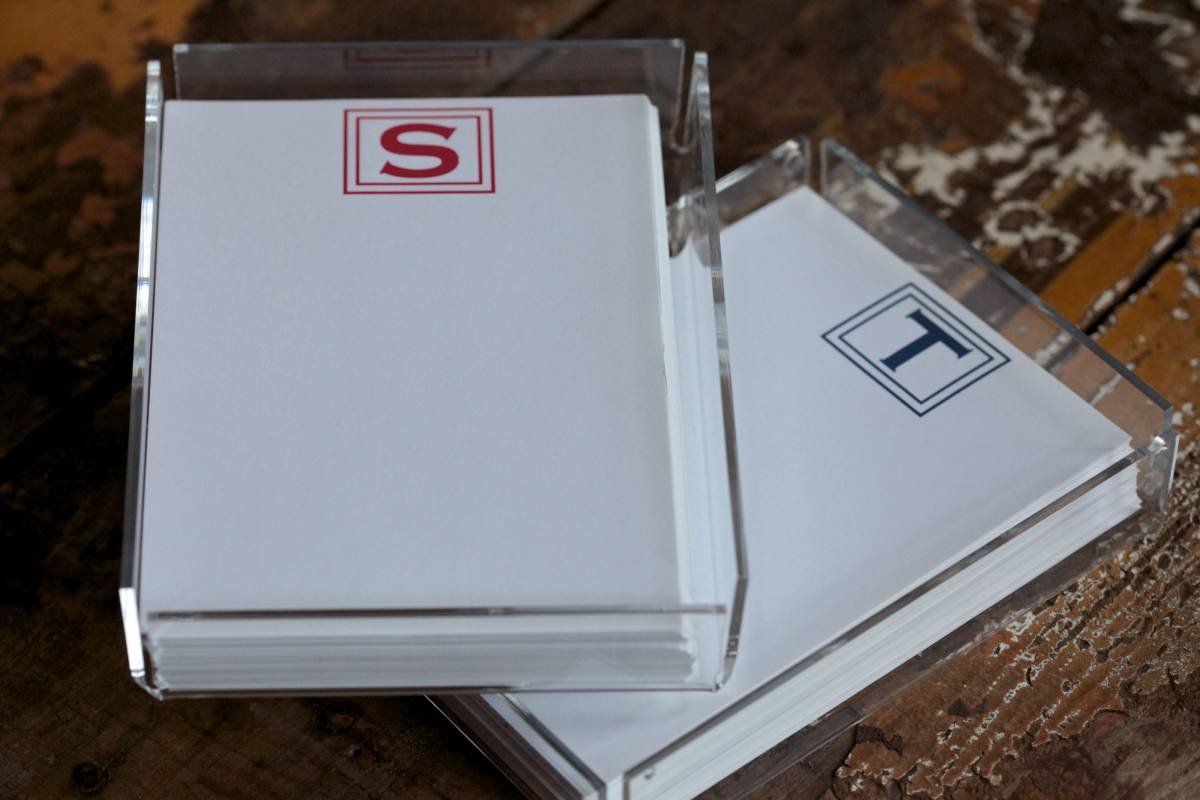 Personalized writing pads never go out of style, and I also especially like the lucite ice buckets and trays. Very snappy and very gift-able.