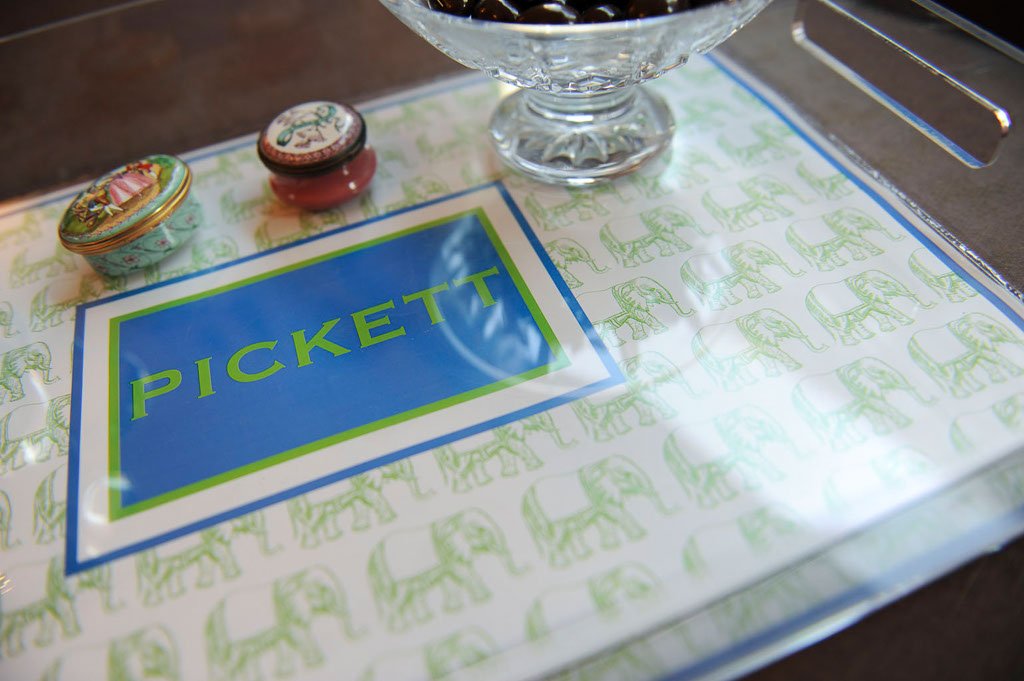 I had lunch at Doubles the other day, and they definitely start early: The club hosted a group trunk show with all sorts of vendors and goodies – including my friend and bookclub buddy Kate Pickett’s fun, colorful and useful(!) custom paper designs and lucite pieces for the home.