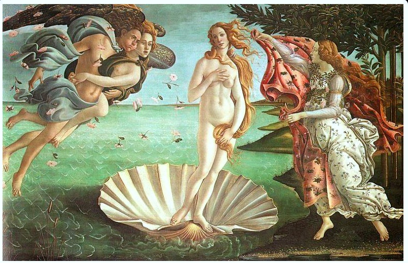 The Birth of Venus, painted in 1486 by Sandro Botticelli, commissioned by Lorenzo di Pierfrancesco Medici.