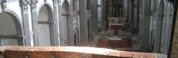 The Medicis’ private balcony overlooking the nave of Santa Felicita. Image via Uffizi.org.