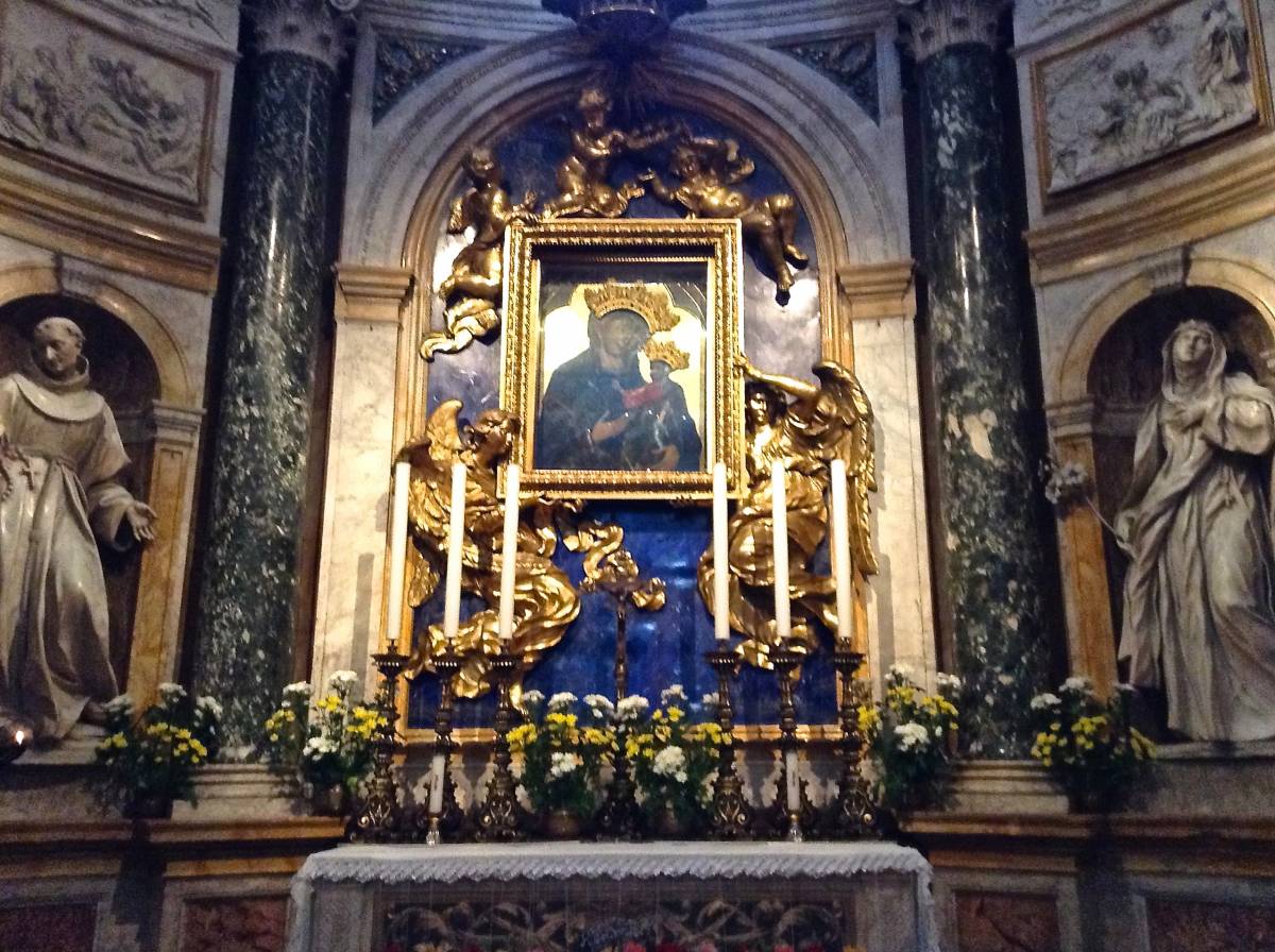 Just beyond the wall of hearts is the entrance to the Chigi Chapel, with its altarpiece of solid lapis. Heavens to Betsy.