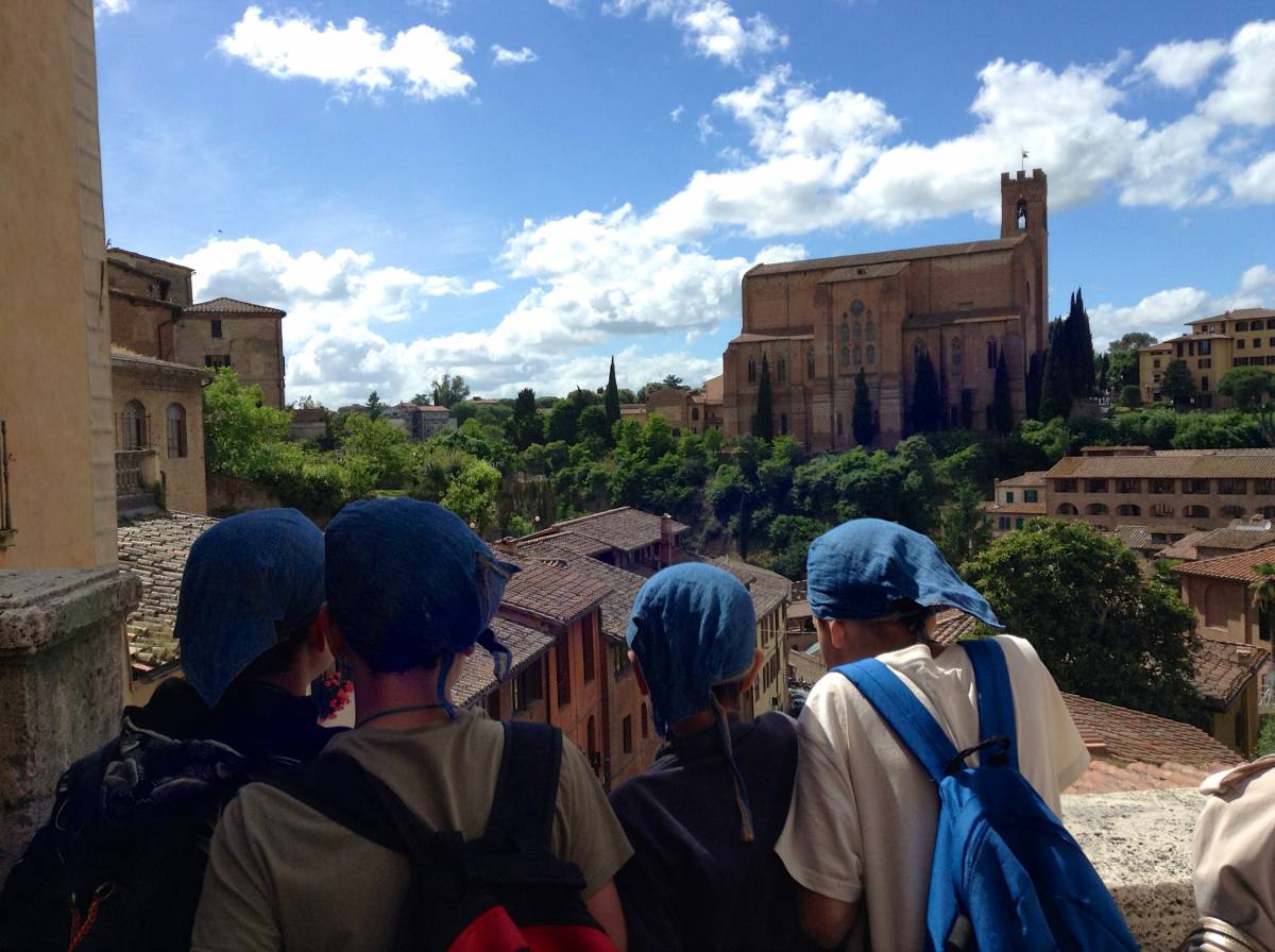 Siena is also home to the University of Siena, with its prestigious schools of medicine and law. We encountered some blue-kerchiefed prospective students along the way, perhaps discussing the merits of dropping water balloons from this ponte.
