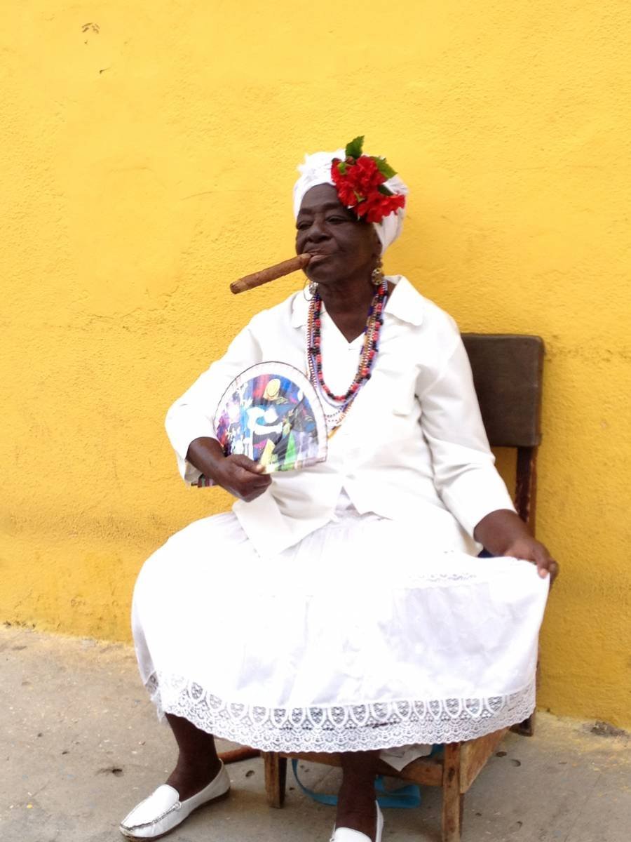 Love all of the vibrant colors. What a character—cigar woman in white!