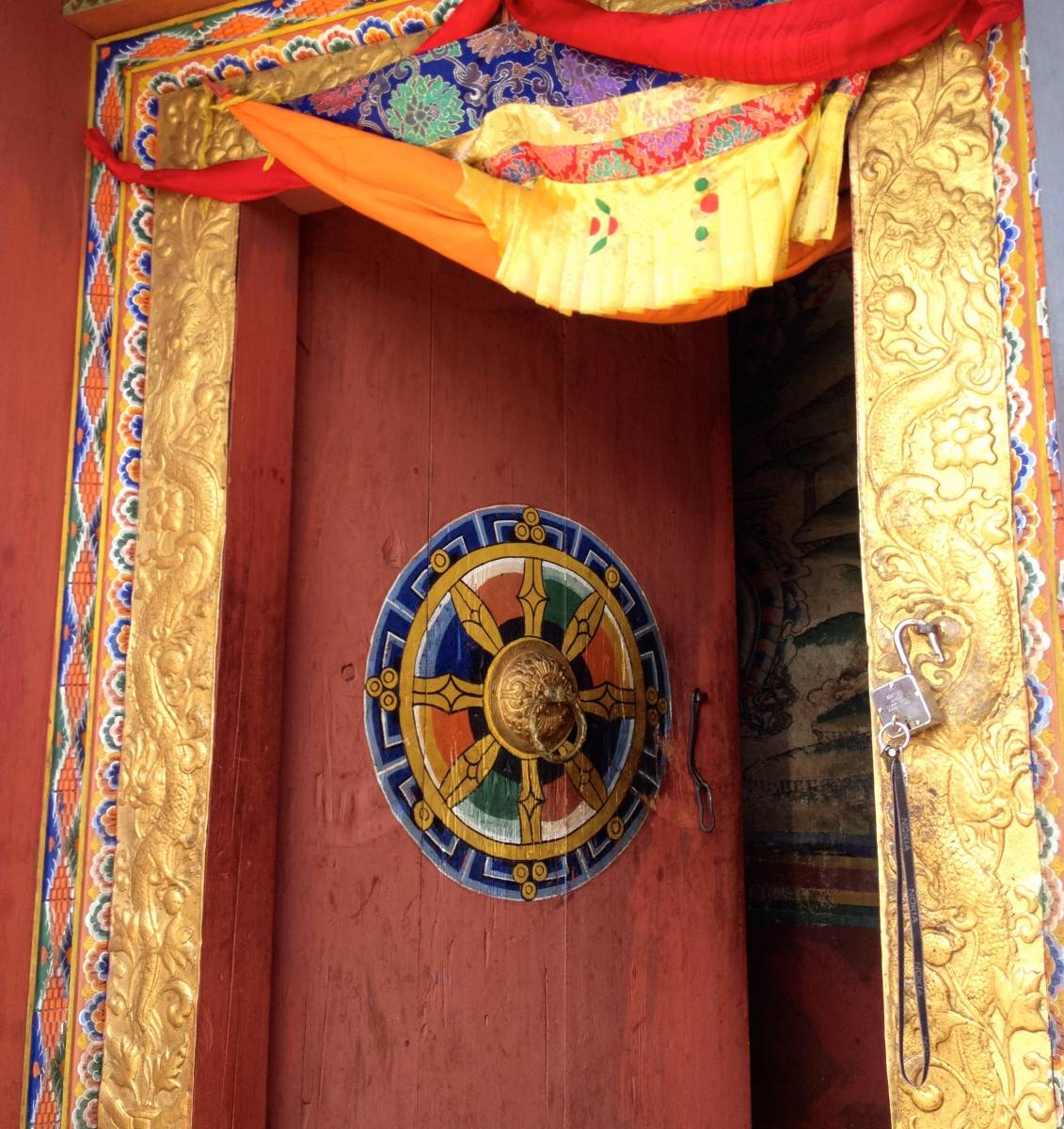 The historical figure I took a shine to was the Divine Madman. Why are you not surprised. Below is the door to his temple. Photographs are not allowed inside temples, but we were lucky on this day to be able to attend a fertility blessing ceremony for a fellow traveler. Phallus alert: The blessing is partly accomplished by a monk (gently) bonking bless-ee on the head with a 10-inch wooden phallus. Let me explain.