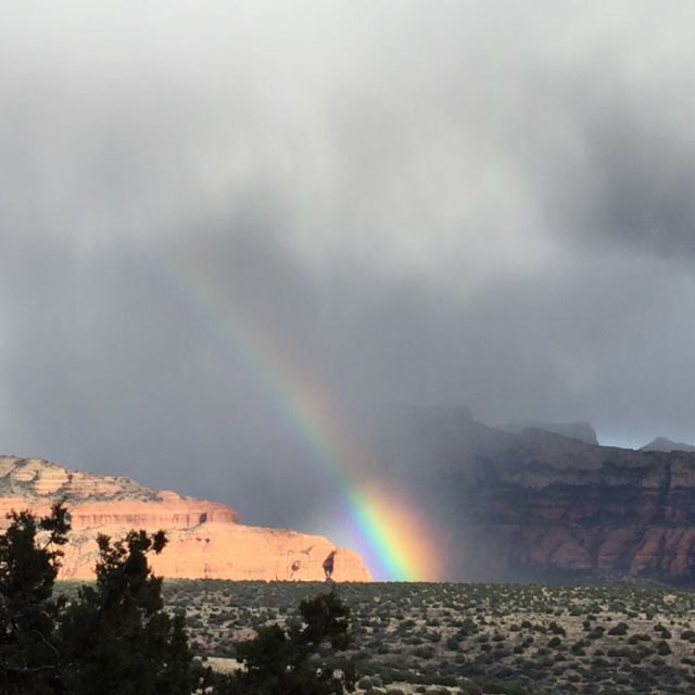 Rainbow as seen from Shaman’s Cave, Sedona, Arizona, December 2014