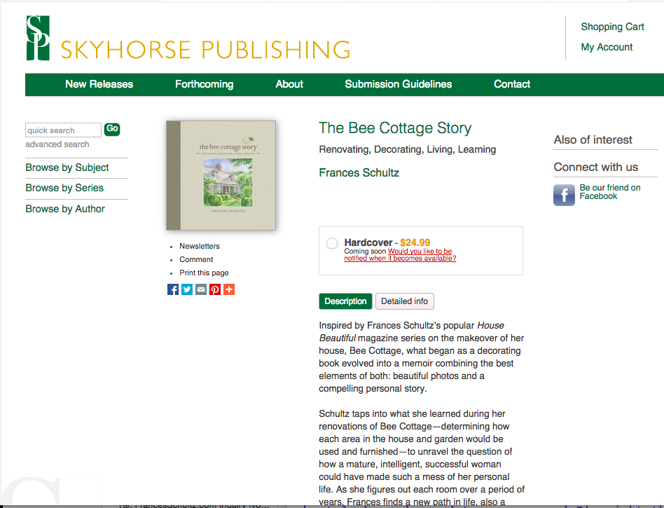 Speaking of, it is on Skyhorse Publishing’s website here. I love the name Skyhorse, don’t you? Idealistic, yet strong.