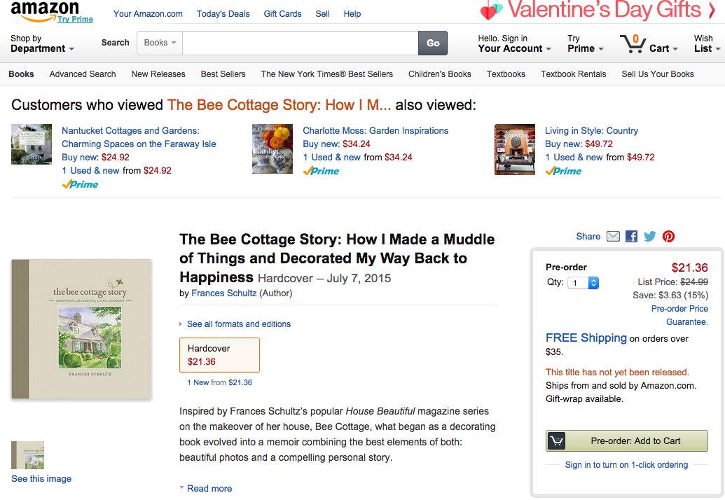 Yaaaaayyyyyy! I just ordered Patina Style and pre-ordered the Rose Water and Orange Blossoms cook book and thought, hmmm, I wonder how the Bee book is coming along and boom! There was your post! Pre-ordered and looking forward to it. Congrats and Happy Weekend!