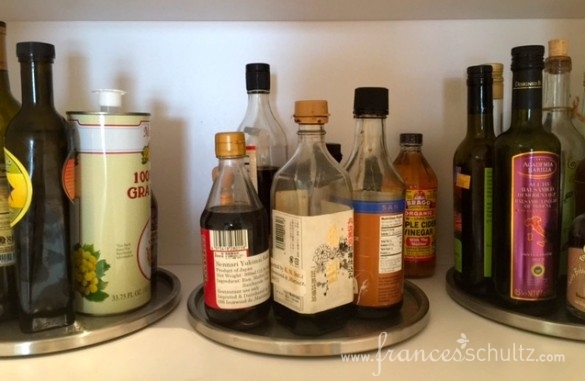 So she is not telling you you don’t need 4 olive oils, 5 weird Asian-y sauces, and 7 vinegars. If they spark joy for you, so be it. Just get a few lazy Susans to organize them while you’re at it.