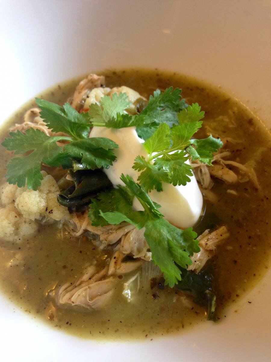 - For the tomatillos, broil until lightly charred and slightly soft, turning once during cooking. Place them in bowl to cool, then puree in blender with 2 cloves of sliced garlic and the ½ bunch of cilantro. Set aside.