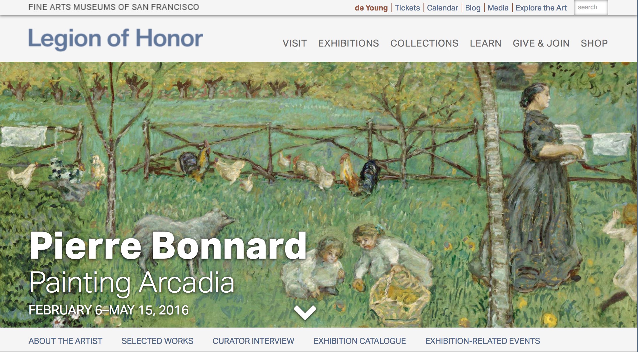 Oooh, also in San Francisco, at the Legion of Honor over in Lincoln Park, is a brilliant exhibit on Pierre Bonnard, whose fresh colors and lively brush strokes I love.
