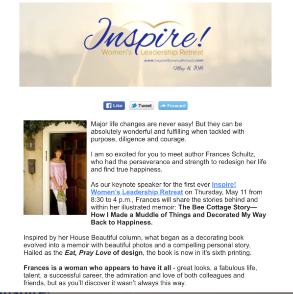 Frances, You told us (a few months ago) to listen to our intuition and watch for signs if we are in a muddle. I have been practicing your suggestions, and now I am signed up to attend this fascinating event. I can’t wait. Linda
