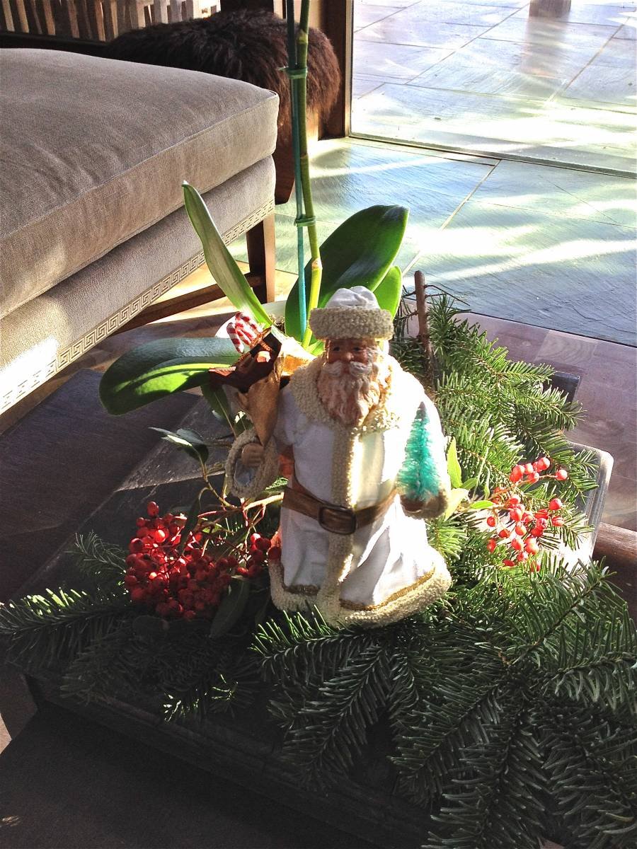 Where have I been not to know about Wilt-Pruf? Did all y’all know about it and not tell me? When I picked up the greenery for the ranch last week at Rolling HIlls Garden Center in Solvang, owner Rocky Marshall said I might want to spray them with Wilt. Santa would be sad if the greenery were dead: Wilt-Pruf instead! (Am I a poet or what)Well that’s like saying you might want to put that crabmeat in the refrigerator. Well YEAH. So I sprayed it — outside — before bringing it in. We’ll see how it goes. Meanwhile, Wilt-Pruf and similar products are called anti-transpirants, and they sort of seal the plant to keep it from losing water. While I was at it I just came across P. Allen Smith’s very good advice on keeping greenery fresh: He says to re-cut all the stems (since evergreen sap seals them and keeps them from absorbing water) and to soak them all overnight in the sink or tub. Then spray with Wilt-Pruf. Click on green lettering to read his article or to learn more about Wilt-Pruf. I’m dying to meet P. Allen Smith. He is the bomb. (P.S. No one paid me to say any of this, just so you know.)