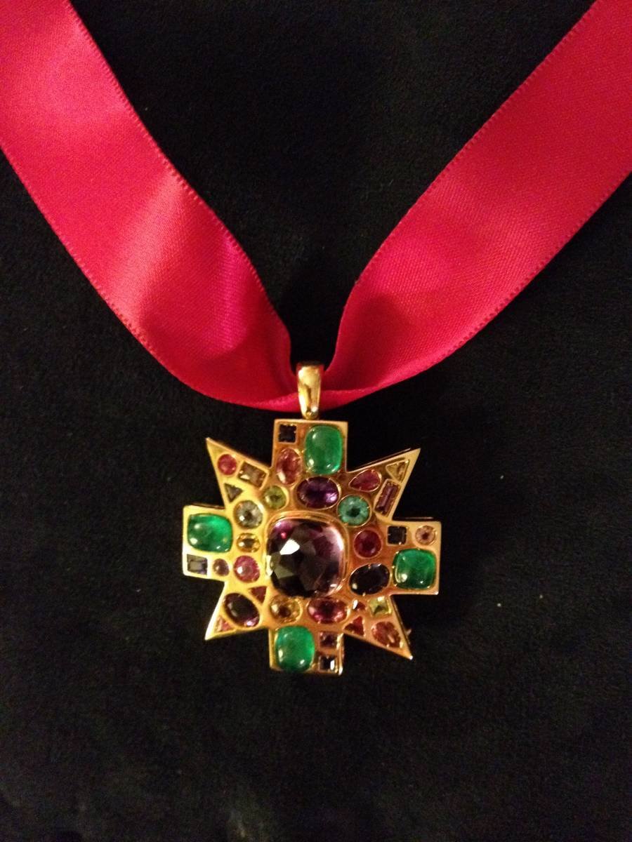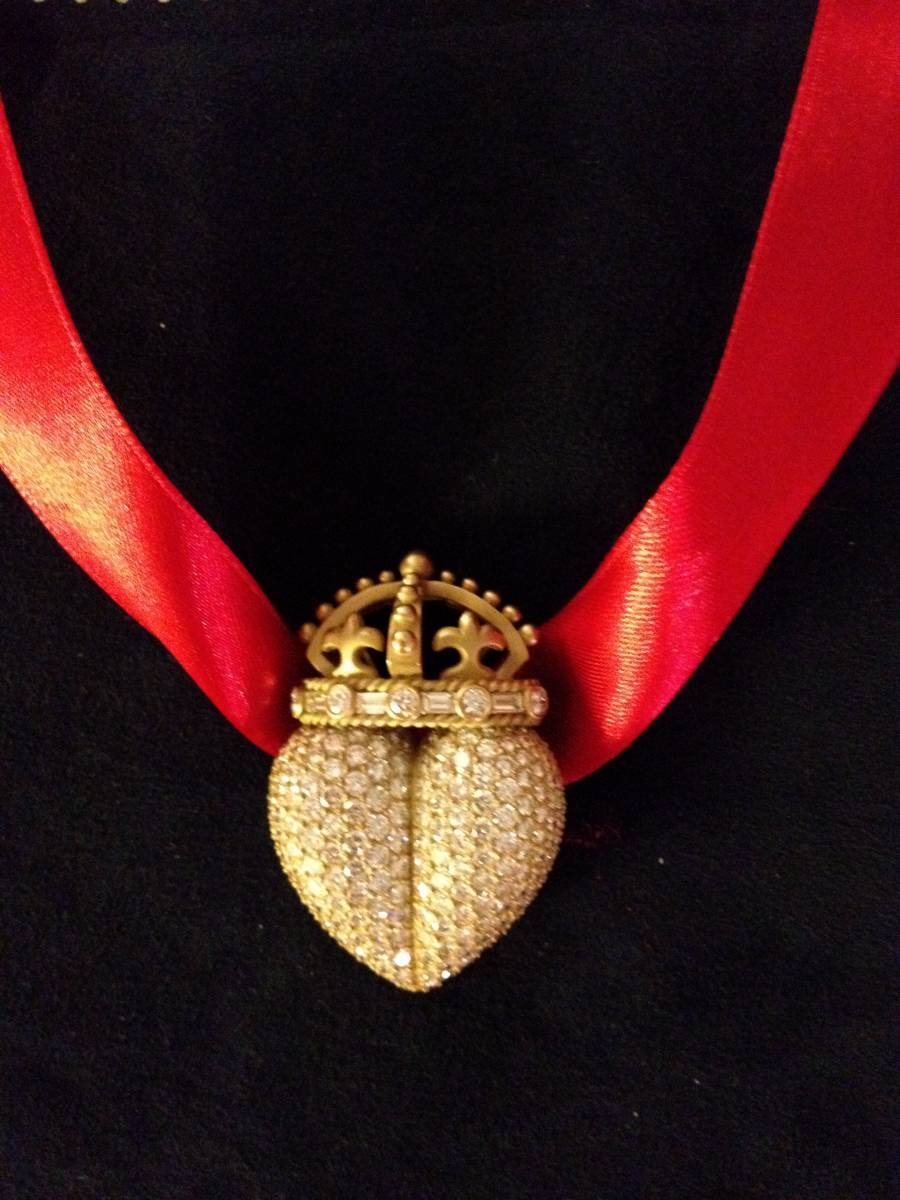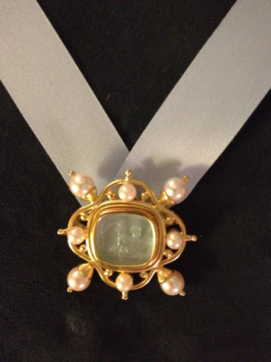 You know all those pretty ribbons and wrappings you save just in case? Make a necklace with one of those ribbons and a brooch or other bauble–a pretty ornament even–for a festive spin on your holiday adornment. If the ribbon is long, tie it in a bow and let the streamers float gracefully down your back. Be-ribboned necklaces are eminently adjustable and can be worn at choker length or longer. The hunkier the piece, the farther down it can hang. Experiment in the mirror. Proportion is all.