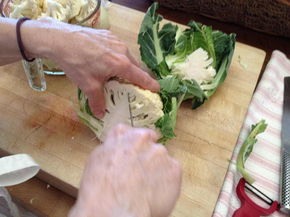 - 1/2-inch (approximately) cauliflower florets, roasted in 450 oven for 8 minutes