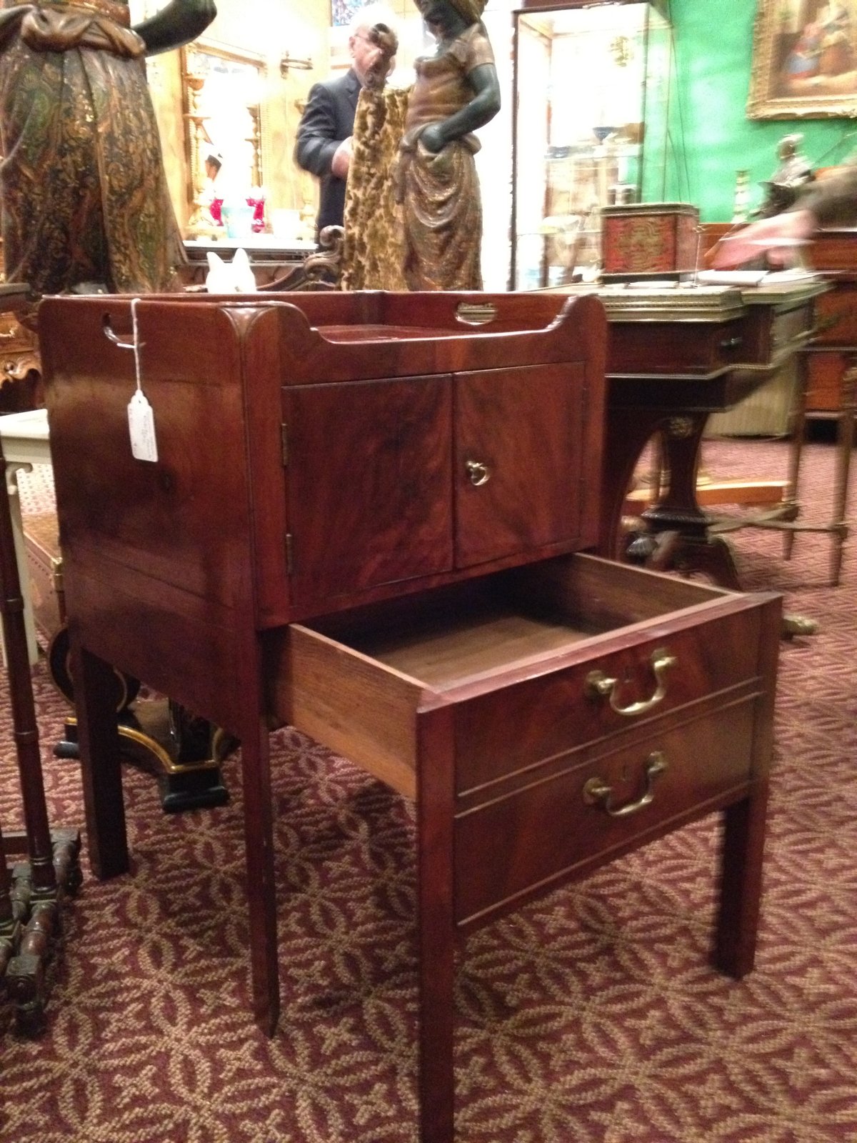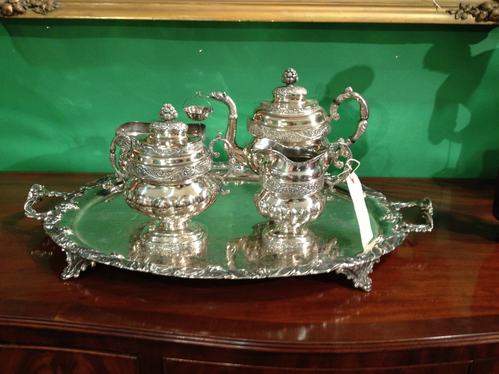 This 1820 American silver service was exquisite, although missing the coffee pot. I love the melon shape, and the fruit compote tops on the teapot and sugar bowl are rarely seen. The teapot spout, holding the strainer, is a dragon - auspicious in the Chinese Year of the Dragon and well-priced in the upper four figures for the whole set.