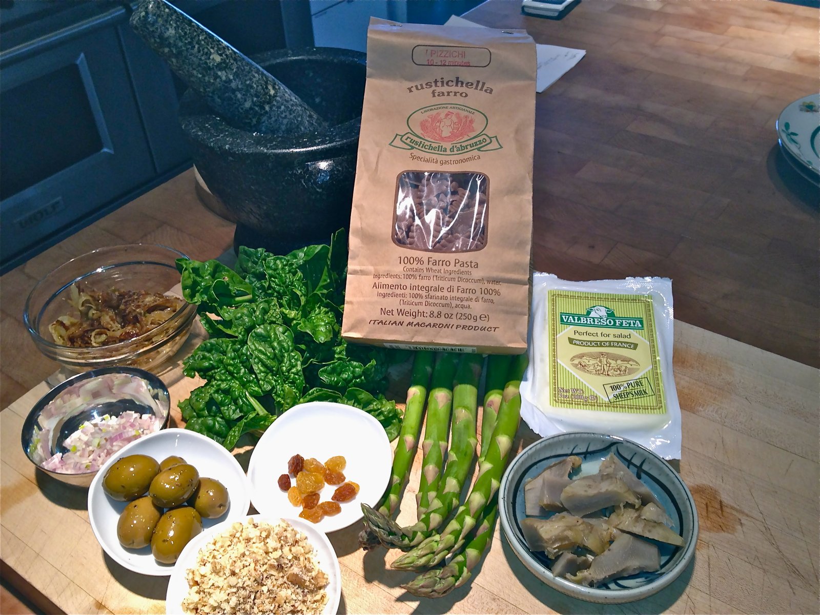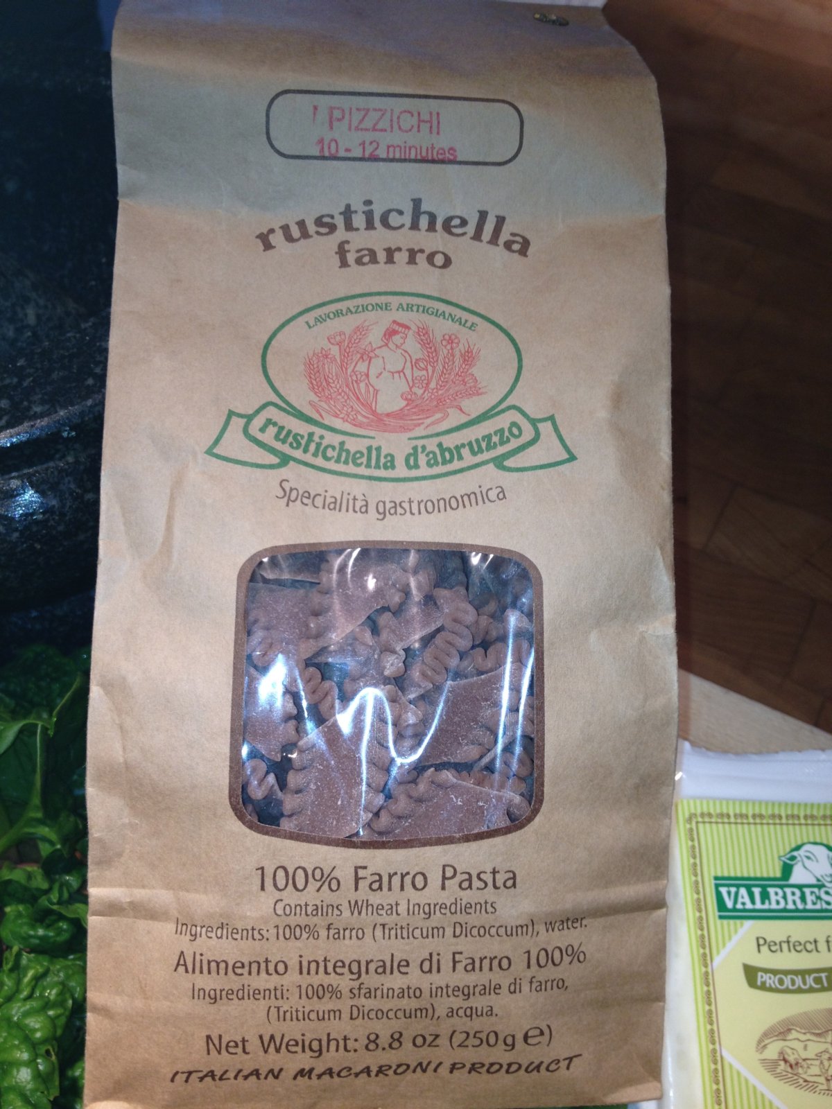 Rustichella d'Abruzzo pasta is not exactly the bargain brand, but it's mighty good, and the farro has a nice nutty flavor.