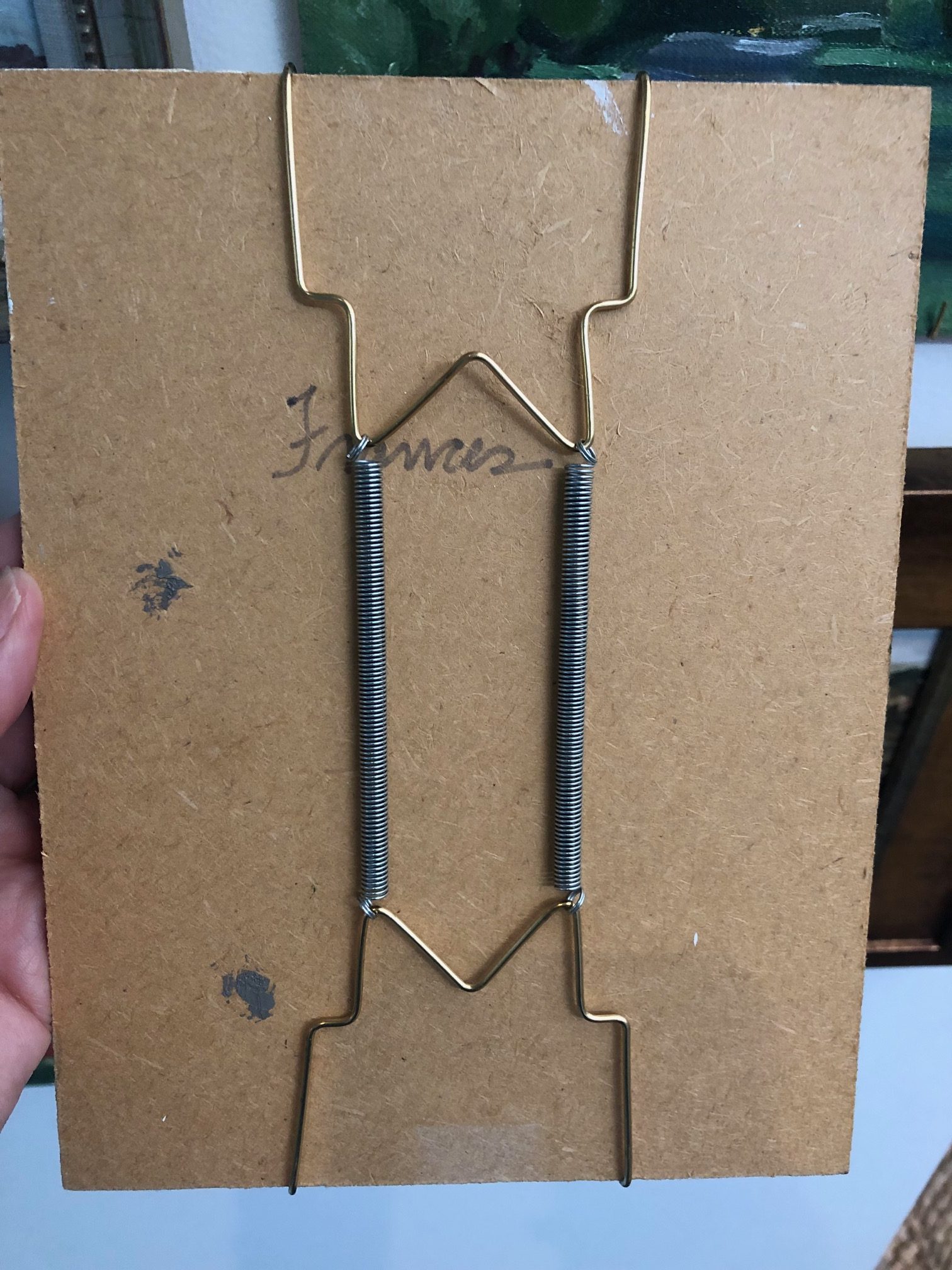Use pliers to bend the hanger out slightly for easier hanging, and to bend the prongs out slightly to avoid scratching the painting.