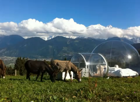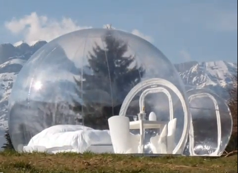 Assembled on wooden platforms with hi-tech construction and low-energy power and cooling systems, Richard says the bubbles make virtually no impact on the environment, and that’s one of the selling points. He sees a market in the growing eco-tourism industry. Event planners show interest, as well. Bar mitzvah in a Bubble! Or maybe we could mandate them for members of Congress. Transparency in government! The possibilities are endless.