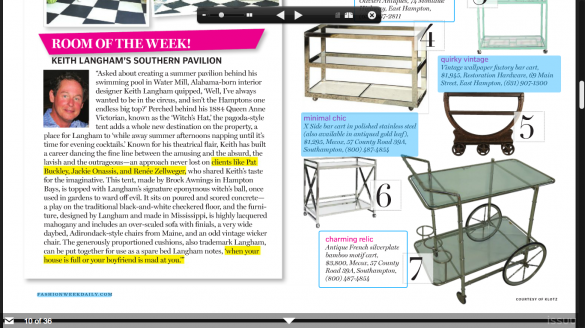 To continue this incredibly strong tie-in between Keith and Britain, see Keith’s delightfully chic pool pavilion, written up oh-so-breezily this week in the Hamptons’ hot new glossy The Daily Dan.