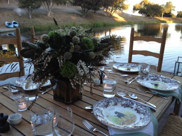 The pond at Rancho La Zaca is one of Stella’s favorite spots, and she is especially pleased  with her likeness as featured on the Spode plates I gave His Grace a while ago. Do you reckon she is spoiled rotten? HG is the biggest pushover I have ever seen.