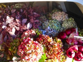 Hydrangeas, eucalyptus, and peonies from Florabundance in Carpenteria, CA