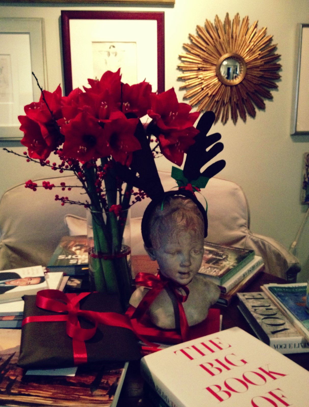 Getting ready to leave for Christmas Eve dinner, check my emails and there’s your new post, yay! What a lovely Christmas present! I’m sitting here reading it and laughing. Being at Martha Stewart’s and winding up at Burger King, too funny! You and my Momma share the same birthday month, hers was December 12. Your joie de vivre reminds me so very much of her. Loved the beautiful photos, your homes are elegant, cozy and welcoming. Wishing you and yours a very Merry (Magnifico!) Joyous Christmas and a Fabulous 2013!