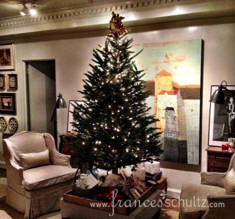 I’ve recently hung this Paul Balmer painting of the New York skyline. I will show it to you in full another time, but I love it even as backdrop for the Christmas tree.