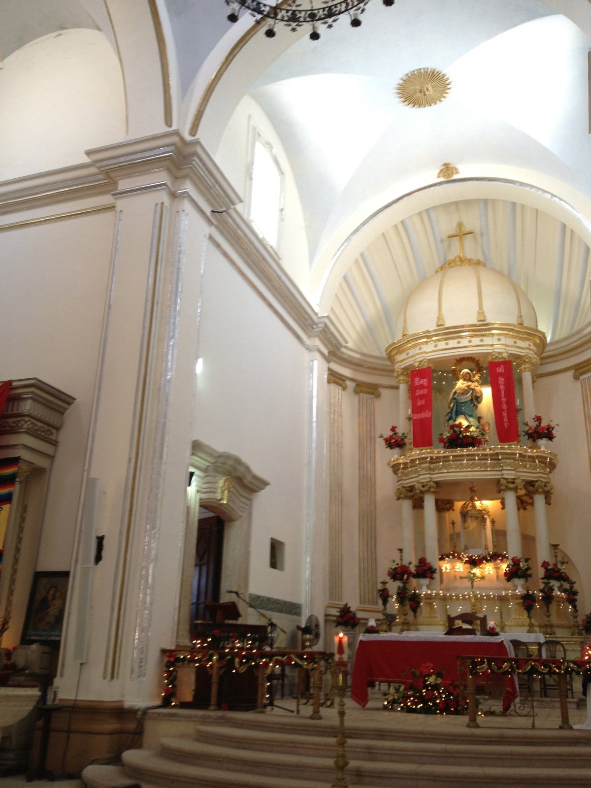 All done up for the holidays, the interior of the Templo de la Purísima Concepción, Alamos