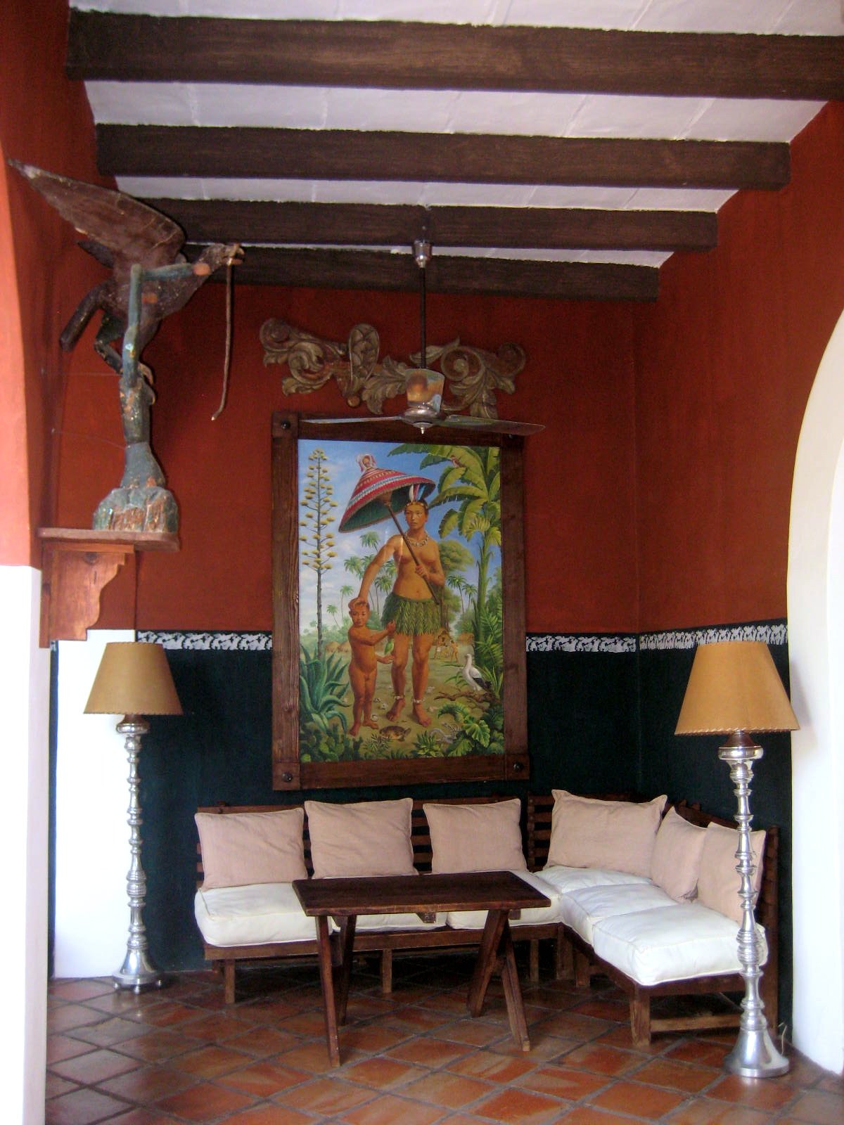 New York designer Fernando Santangelo and 20th-century decorative arts dealer Cristina Grajales both lent their efforts to the artful restoration of this house, located felicitously just steps from the luxurious Hacienda de los Santos resort and spa, covered in Mexico – Part 2, Saturday’s post.