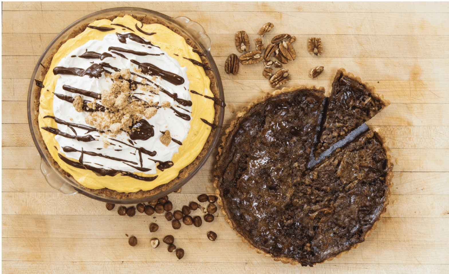 The original does not contain nuts, and nuts are optional in our version, but we like the bit of texture they add. We also like the unexpected walnuts, but pecans are okay, too. You may also use a regular pie pan if you don’t have one with removable sides.