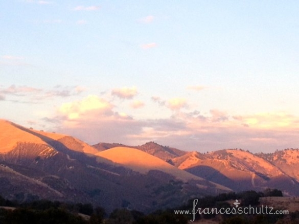Rancho La Zaca - The San Rafael Mountains in pink.