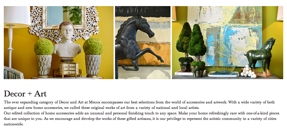 So this is exciting news: Mecox Gardens has a new website. Images below therefrom: