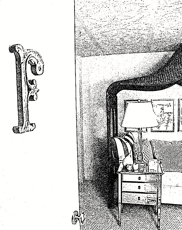 NY Office Door With Toon Camera. I will miss my wallpapered ceiling. That was designer John Oetgen's idea. He's going to help me with the new place. He is used to me by now, which isn't easy.
