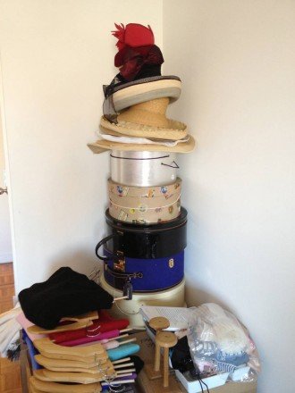 Movin’ on up in our case is movin’  on down and west to Fifth Avenue, which is great, and it’s the first place that is His Grace’s and mine together. Before we had his and mine, and now we have ours. (Aww.) It’s a little more space but not quite as much closet. Ahem. Not that I’m complaining. But if you have any thoughts about where these hats might go, please let me know.