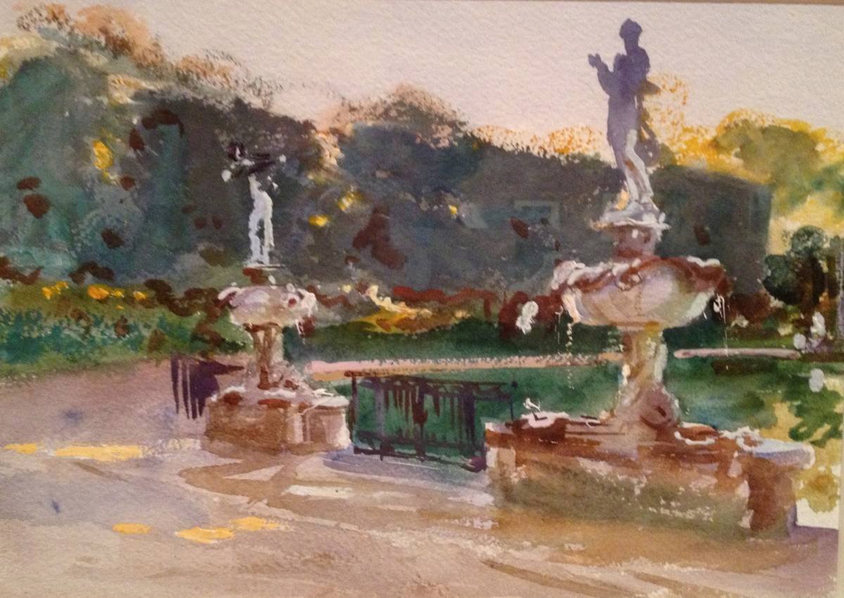 In his 40s Sargent was already a rock star as a society portraitist and a painter, despite the fact that the French snubbed him. Or perhaps because the French snubbed him. The English (and some Americans) would support that just on principle. Just sayin’. Anyway Sargent’s turning to watercolors was his version of a mid-life crisis. Thank goodness for us they did not make Corvettes then.
