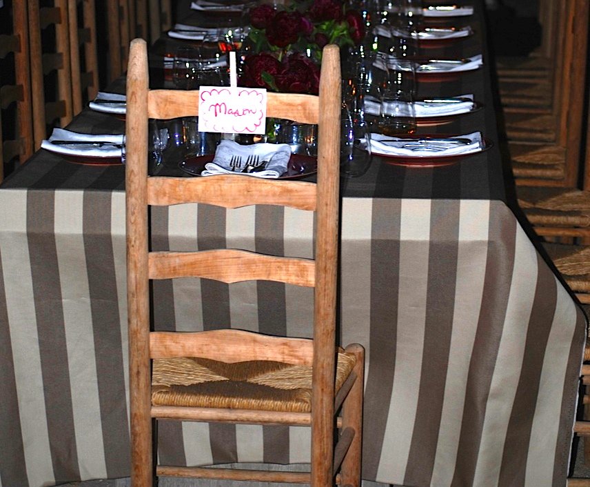 As it was breezy, we clothes pinned the place cards to the backs of the chairs. Photo by Julie Farrell.