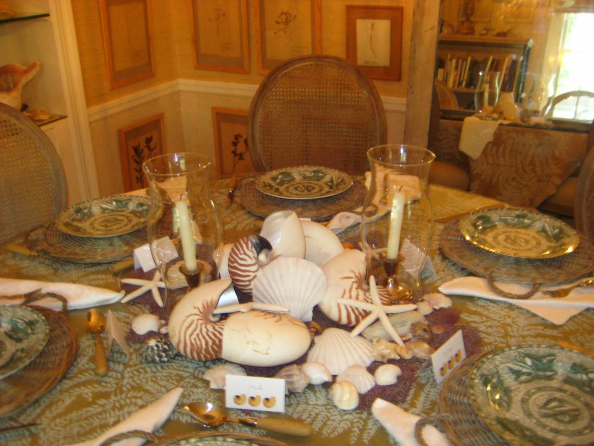 Bee dining table Centerpieces don't always have to be flowers. Seashells, pottery, paperweights, even piles of pretty old books would all make interesting arrangements. Bee dining table