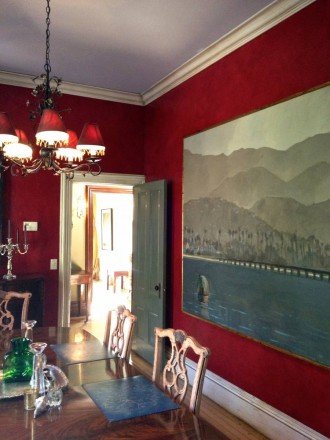 Red is also always a good idea for a dining room. I believe Mark Hampton said that. The painting is by Ginny’s husband Garrett. Do see the Garrett Speirs website here, and prepare to swoon. Just saying.