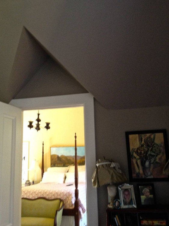 An old fashioned ante-room serves as dressing room and closet for the master bedroom.