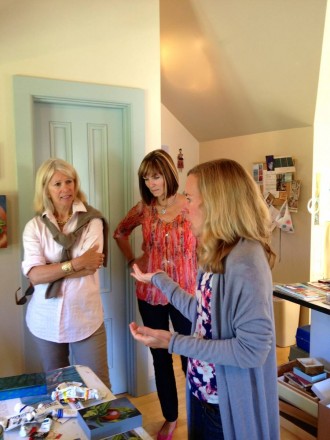 Ginny Speirs, right, talks to visitors in her Santa Barbara studio. Molly Ballantine, left; and artist Renee Kelleher, center.