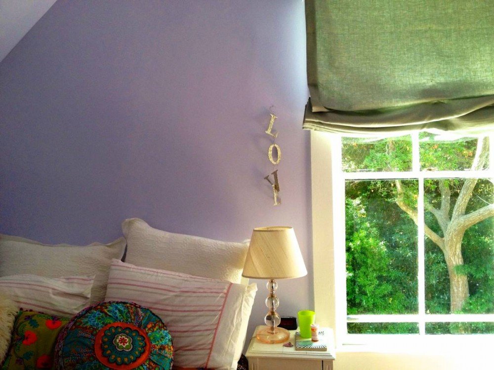 The Roman shades in the breakfast nook have a bee motif. Love that. Also love Ginny’s chicken paintings on the wall and the mosaic tabletop made from pottery shards.