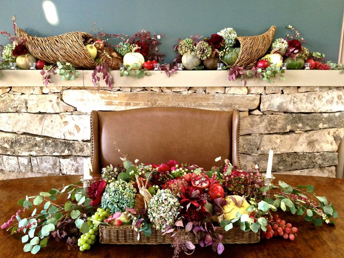 Thanksgiving at RLZ – Cornucopia on Mantle vignette