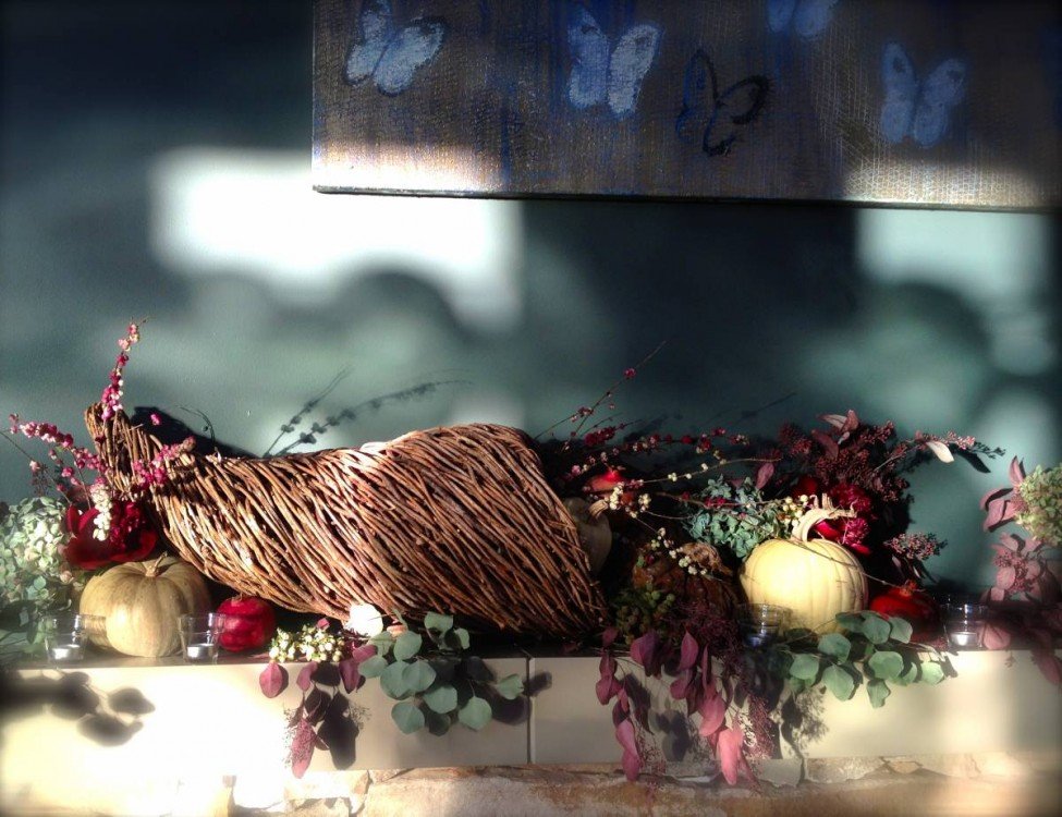 Thanksgiving at Rancho La Zaca – Cornucopia on mantle in shadow