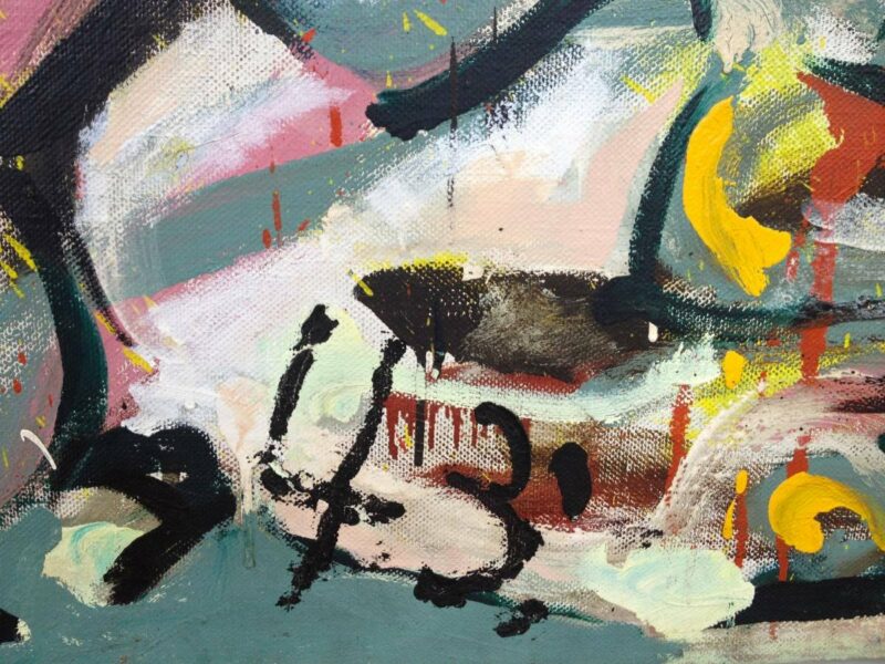 What is Mural doing at the Getty, you ask? It was there to be restored, a complex and painstaking process two years in the making. At almost 8′ x 20′ the dern thing barely fit in the museum’s freight elevator, said conservator Laura Rivers, who hosted us in the gigantic studio where the restoration was being done. Pollock had to tear out a wall in his New York studio to accommodate it. “It looks pretty big,” he wrote at the time, “but exciting as all hell.”